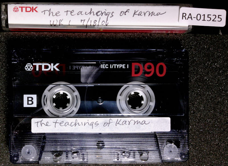 And the person goes, huh? He says, no, he says, that's my karma. And the person goes, huh? He says, you translate it as destiny. So, that's not correct. Karma is not destiny. However, you can see how there are people... When the teaching of karma was transmitted to England, you know, where Peter Sellers lived, it was transmitted by various lineages. And in some lineages, karma is taught as destiny. And we can go into detail about this later maybe. But in some traditions they teach when you do something, then you will go someplace as a result of doing that thing. That action will be your destiny. But the Buddha Dharma is different. And so I wanted to read you a text which is making a point that the Buddha didn't make very many times.