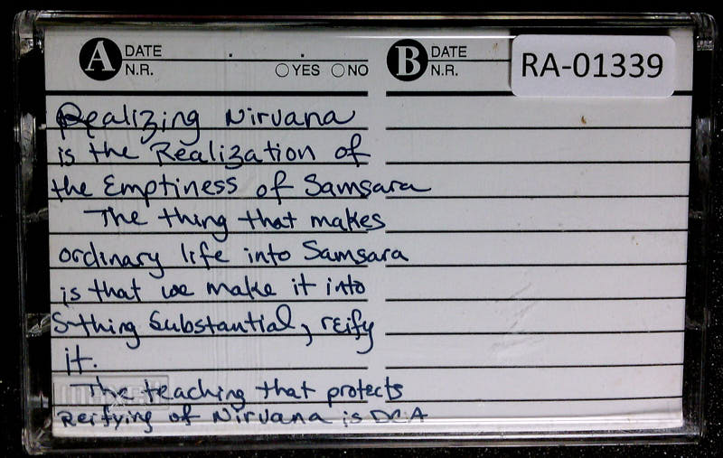 Additional text: Realizing Nirvana is the Realization of the Emptiness of Samsara. The thing that makes ordinary life into Samsara is that we make it into something substantial, reify it. The teaching that protects reifying of Nirvana is DNA.